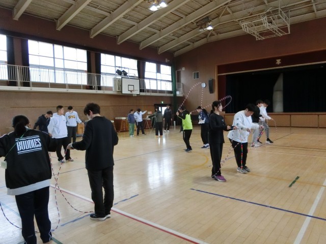 本研修では、「なわとび」を教材とした授業を取り上げ、従来の「なわとびカードを用いて個々に黙々と技能練習を行う学習」から一歩進み、子ども同士が関わり合い、考えを伝え合いながら学びを深めていく協働的な授業づくりについて学び合いました。