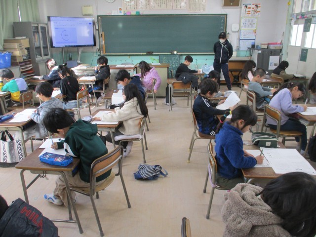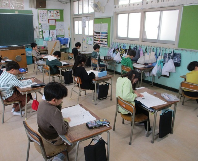 1月15日(木)、16日(金)の2日間、1・2年生の子どもたちが国語と算数の学力調査に取り組みました。この学力調査は、大阪市が進める児童の学力向上の取り組みを受け、港晴小学校が独自に実施する調査です。普段の単元テストとは違う形式のテストでしたが、慣れないながらも、子どもたちは熱心にテストに取り組んでいました。写真は、2日目の今日16日(金)、2時間目に国語の問題に取り組んでいる様子です。