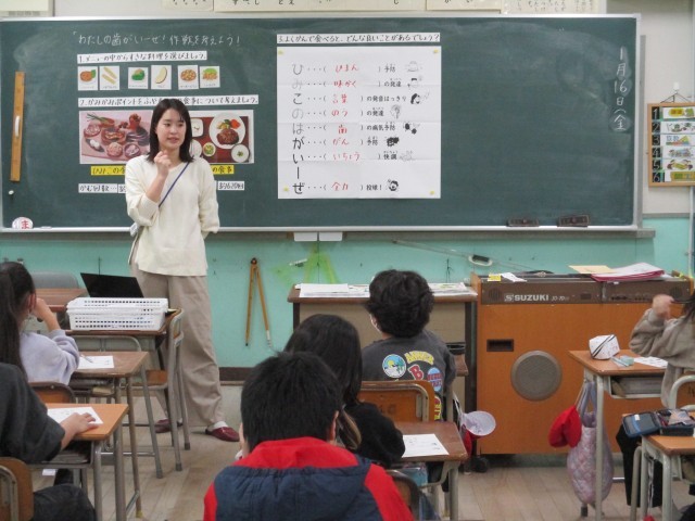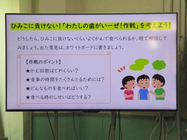 1月16日(金)、4年生が「わたしの歯がいーぜ!作戦を考えよう!」というめあてで、よく嚙んで食べることの良さについての学習をしました。よく噛んで食べることの良さについて理解した後、自分にできること考え、グループで交流しました。