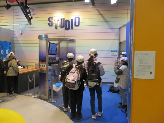 1月21日(水)、5年生が社会科学習の一環として、NHK大阪放送局BKプラザの見学に行きました。1階の「わくわくスタジオ」では、「クロマキー技術(青や緑など特定の色の部分を透明にして、別の映像と合成する技術)」の体験をしました。また、「なりきりスタジオ」では、キャスターがどのように原稿を読んでいるのか体験できる「ニュースキャスター体験」をしました。さらに9階では、「効果音体験コーナー」で効果音がどのように作られていたか体験したり、セットの見本を見学したりする等、貴重な体験学習をすることができました。