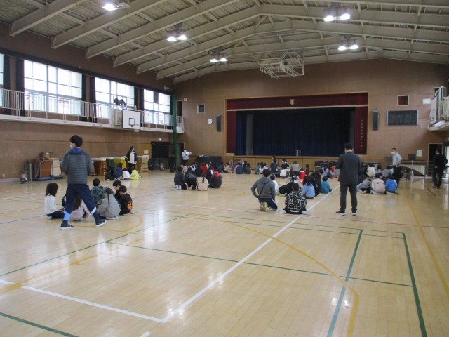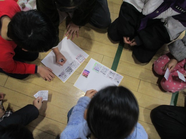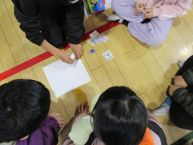 2月12日(木)の児童集会は、「卒業を祝う会」に向けての活動でした。1~5年生の子どもたちが講堂に集まり、6年生への感謝の気持ちや卒業をお祝いする気持ちを込めて書いた【メッセージカード】を台紙にのり付けしたり、イラストを描いたりして、6年生へのプレゼントを仕上げていきました。