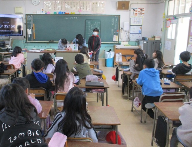 3月11日(水)、今年度最後の図書委員会による読み聞かせがありました。この1年間、図書委員会のみなさんは【朝の読み聞かせ】や【図書館開放】等を計画・実施し、港晴小学校全校児童のためにたいへん活躍しました。1年間、ありがとうございました。