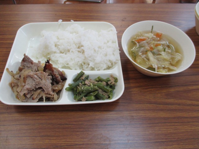 4月3日(金)、今年度から港晴小学校の給食調理業務を行う民間委託業者さんの給食試食会を行いました。献立は、「豚肉のしょうが焼き・すまし汁・ツナとさんどまめのいためもの・ごはん」でした。とてもおいしかったので、4月9日(木)からの給食を楽しみにしていてくださいね。