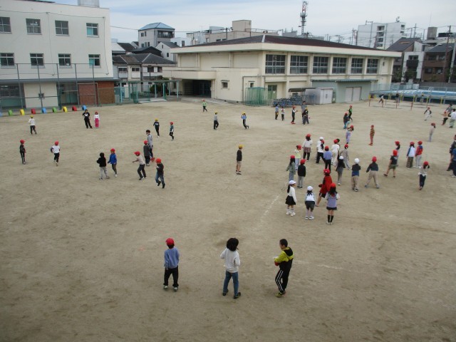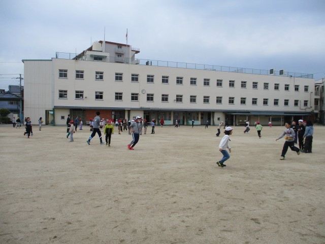 2時間目と3時間目の間の休み時間、運動場では子どもたちと先生方が一緒に遊ぶ姿が見られました。鬼ごっごやドッジボール等で一緒に遊んでいる姿はとても楽しそうでした。子どもたちの顔も、先生方の顔も、笑顔であふれていました。
