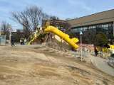 おにごっこを終えて、扇町公園の大きな滑り台で遊んでいます。