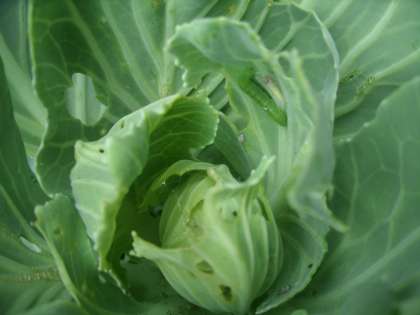 キャベツの葉の中 モンシロチョウの幼虫がいました