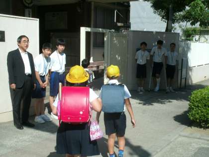 朝 校門であいさつ