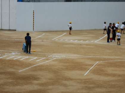 運動場に 線を引き 交差点や横断歩道をつくりました