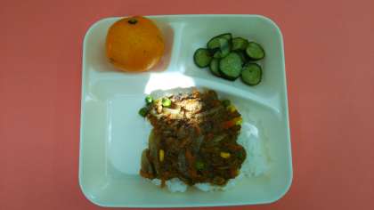 ドライカレーに使用するカレールウの素は、原材料に小麦を使用していない「米粉のカレールウの素」です。小麦アレルギーのある子どもたちも、他の子どもたちと同じように食べることができます。