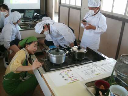 今日は、大阪ガスの方にお越しいただき、調理実習をしました。