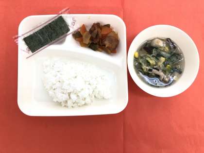 今日の献立は、「酢豚」「中華スープ」「焼きのり」「ごはん」「牛乳」です。「酢豚」は、中国料理のひとつで、揚げた豚肉を甘酢あんでからめた料理のことを言います。