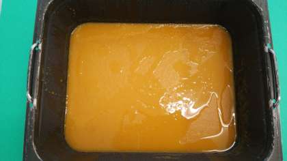 給食の手作りデザートのひとつういろうです。今回は、うるち米を粉にした上新粉と砂糖、水をまぜあわせて、ペースト状のかぼちゃを練りこんで蒸しています。秋らしい深みのある黄色と、素朴なかぼちゃの甘みが感じられます。