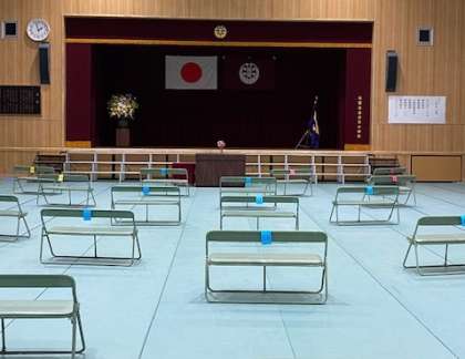 4月に入学式を挙行できなかったので、桜の季節の校内と入学式・保護者会会場の様子を紹介します。
