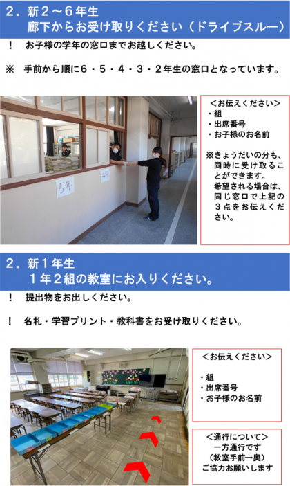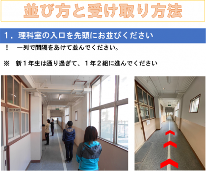 ※新1年生については、1年2組の教室内でお渡しします。