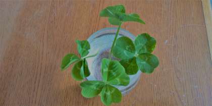 四つ葉のクローバーの花言葉は、日本語では「幸福」、英語では「Good Luck」だそうです。今は、大変な時期ですが、みなさんの幸福を祈っています。Good luck to you!!!