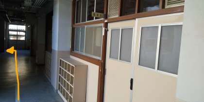 げんかんをはいって みぎに まがると ほけんしつ があります。