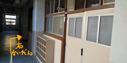 さて こんどは ほけんしつよこのかいだんを 2かいへ あがります。