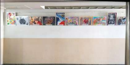 あがったところには、いまの 2ねんせいから6ねんせいまでの人が かいた「え」を見ることができますよ。