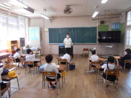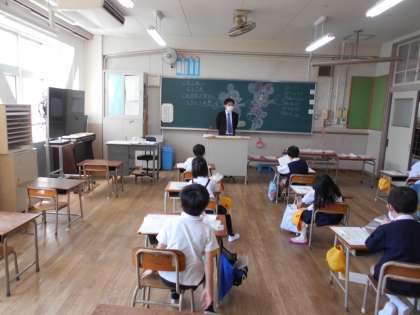 2年生登校日の後半です。後半クラスも玄関で「おはようございます」という元気な声であいさつをしてくれました。新しい担任の先生と初顔合わせです。後半は16〜最後です。2ヵ月10日ぶりにお友達に会いました。児童はお友達に会うのを楽しみしていたみたいですね。4月からの宿題を提出し、また新しい宿題をもらいました。担任の先生の言うことをしっかりと聞いていました。