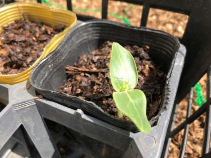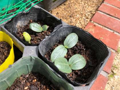 ゴールデンウィーク前に植えた、ヘチマとヒョウタンの芽が出ました。