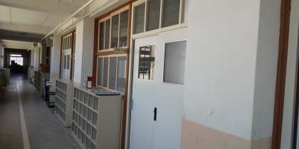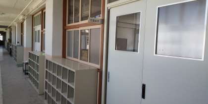 かいだんをあがって、みぎへ まがると すぐに 「じどうかいしつ」があります。1まいめのしゃしんです。 このへやは、5ねんせいや6ねんせいの うんえいけいかくいいんかいや だいひょういいんの おにいさん・おねえさんが がっこうのために おしごとをする ばしょです。