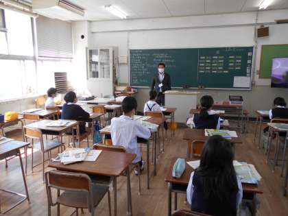 今日は5年生の登校日です。各クラス出席番号前半の児童が8:30に登校しました。玄関では大きな声であいさつをしてくれました。担任の先生とは初の顔合わせです。背も伸びている児童もおり、しっかりと担任の先生の話を聞いていました。
