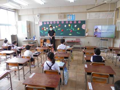 1年生は16日の土曜日に入学オリエンテーション(1回目の登校日)を行いました。今日は2回目の登校日です。大きなランドセルを背中に背負い、10時30分に登校しました。一人で登校したり、保護者の方と一緒に登校している児童もいました。大きな声であいさつをしてくれました。