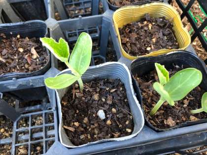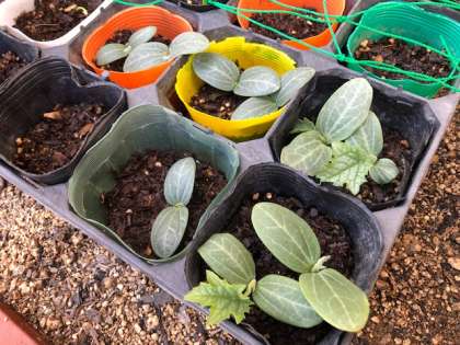 理科で育てている、ヘチマとヒョウタンも「本葉」が出てきました。