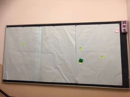 4年生の掲示板のかざりを作りますよ!楽しみにしていてください。