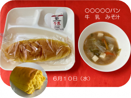 10日(水)の献立は、「みそ汁・パン・牛乳」です。