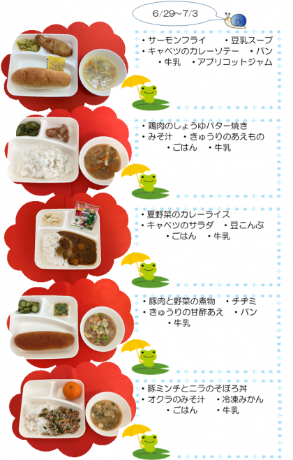 今週はカレーや冷凍ミカンが出て、子どもたちは大喜びでした。