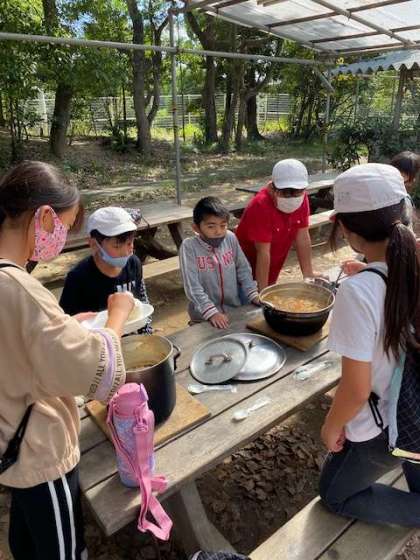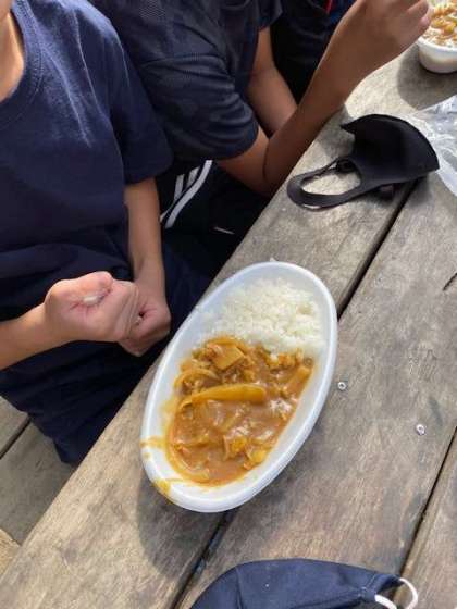 みんなで協力してつくったカレーの味は最高です。おいしそうなカレーです。