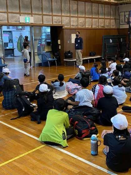 2日間の林間での活動がすべて終了しました。お世話になった活動センターの方にお礼のあいさつをしています。思い出になったと思います。センターを出た後は、駅に向かい電車に乗って帰校します。