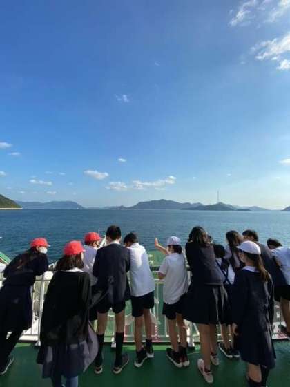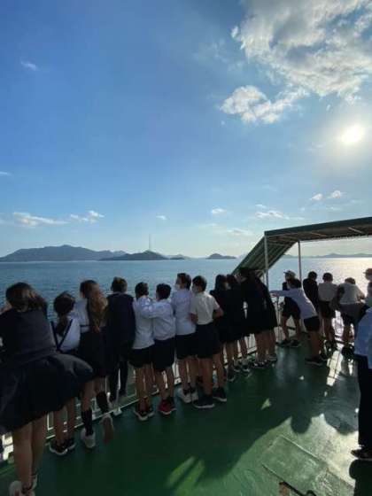 6年生修学旅行(大久野島に向かうフェリーの中)