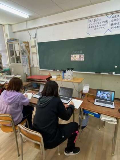 10月31日 土曜授業3限目の学級活動は、オンライン学習で行いました。先日のテスト配信を受け、各家庭と教室をつなぎ、黒板の文字や資料が画面越しに読み取れるかの確認やテストの答え合わせをしました。