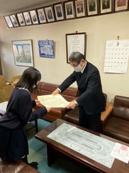読書感想画中央コンクール「奨励賞」、港区子ども会ソフトボール大会「準優勝」について、校長室で表彰しました。中学校でも自分のよさを伸ばして活躍してください。おめでとうございます。