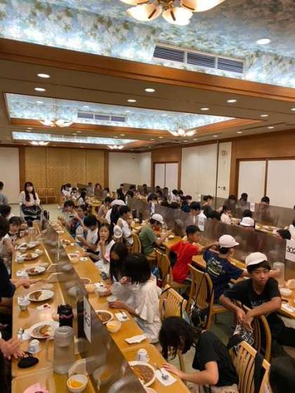 乗り物酔いを少しした人もいますが、元気に宿舎に到着しました。昼食後はアクティビティです。