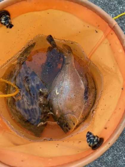釣りの様子です。釣れています。大自然の中で充実した時間を過ごしています。