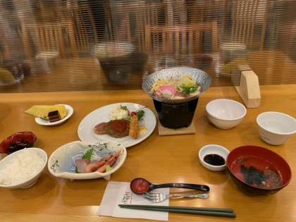 豪華な夕食に舌鼓を打ち、その後、お土産を買っています。