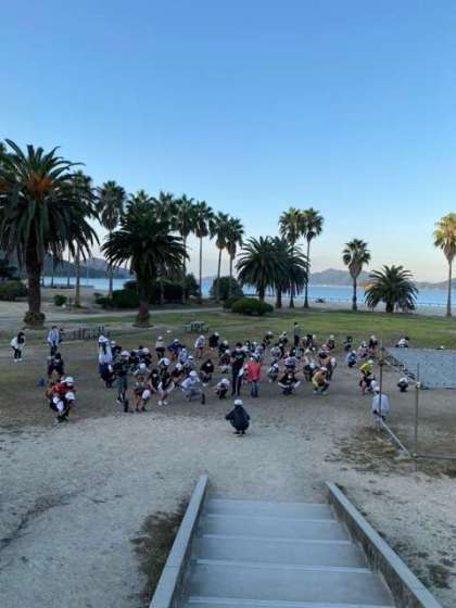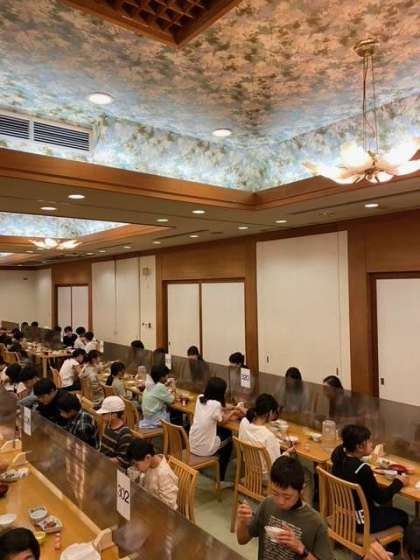 みんな元気です。朝の会で体操をし、その後、しっかり朝食を食べています。
