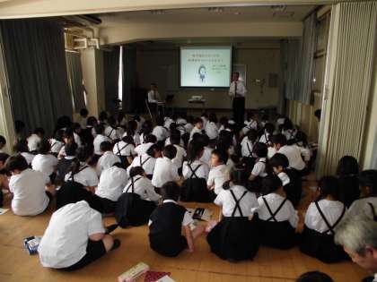地下鉄弁天町駅の駅長さんと駅員さんが出前授業に来られました。2年生が多目的室で地下鉄のことについて学びます。でも2年生には難しいかも。地下鉄の重さや長さなどまだ算数では習っていないのでじっくり考えていました。地下鉄のことが少しでもわかり、マナー向上につながるかもしれません。