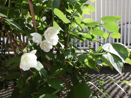 ウツギの仲間で、梅花ウツギ(八重咲き)です。五月梅(サツキバイ)とも言われます。アジサイ科の植物です。ウツギは別名 卯の花。そうです、あの『夏は来ぬ』の歌に出てくる卯の花です。『卯の花の 匂う垣根に 時鳥(ほととぎす) 早も来鳴きて 忍音(しのびね)もらす 夏は来ぬ』です。