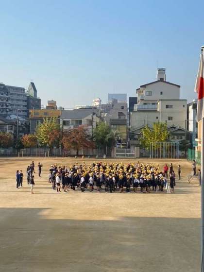 新型コロナウイルス感染症について大阪モデルが「緑信号」に変更されたことを受けて、児童朝会をこれまで通りの運動場で行いました。低学年にとっては初めてであり、中・高学年にとっては久しぶりの運動場での実施となりました。並び方や教室への戻り方を丁寧に行いました。