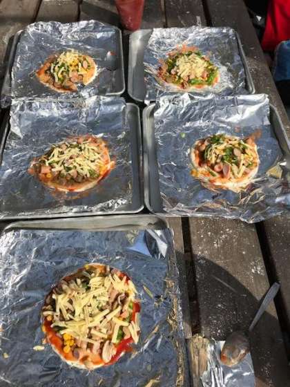 昼食はピザ作りに挑戦しました。みんなとても上手に作り、自分で作ったピザの味は格別だったようです。きちんと焼けていますね!!!