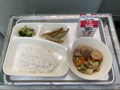 今日の給食では、きびなごを天ぷらにして、たれをからめていただきました。