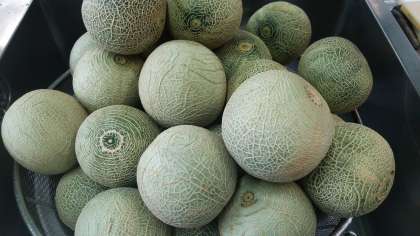 「クインシーメロン」は、給食では年に1回登場します。皮に網目模様があり、果肉は赤肉系で、甘みのあるメロンです。1人1/8切れずつです。(写真右)