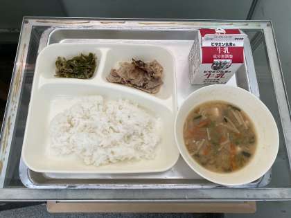 豚肉のしょうが焼き・みそ汁・じゃこピーマン・ご飯・牛乳です。