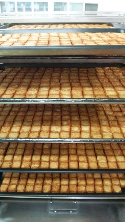 「あつあげのみそだれかけ」は、毎回好評な献立で、焼き物機で表面をパリッと焼いたあつあげ(写真2枚目)に、赤みそ、砂糖、こい口しょうゆで作った少し甘いタレをかけます。