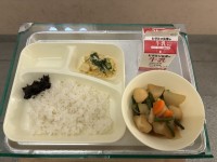 今日の献立は、「豚肉の甘辛焼き」「みそ汁」「もやしのごま酢あえ」「ごはん」「牛乳」です。