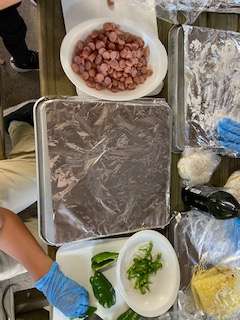 チーズやマッシュルームなどをトッピングし、オリジナルのビザを完成させました。